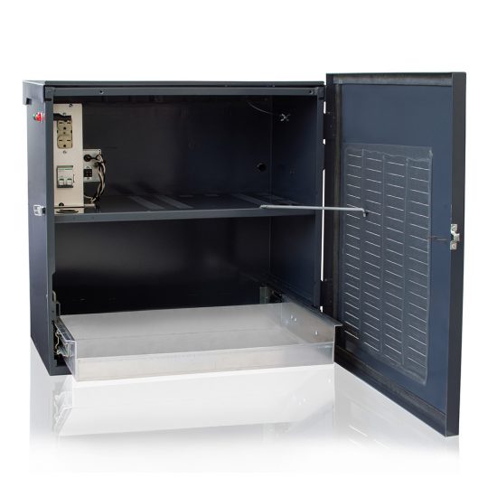 Lead-Acid VRLA and LFP batteries can be securely installed in its reinforced tray, so technicians can easily accomplish the the batteries’ testing during a routine maintenance.